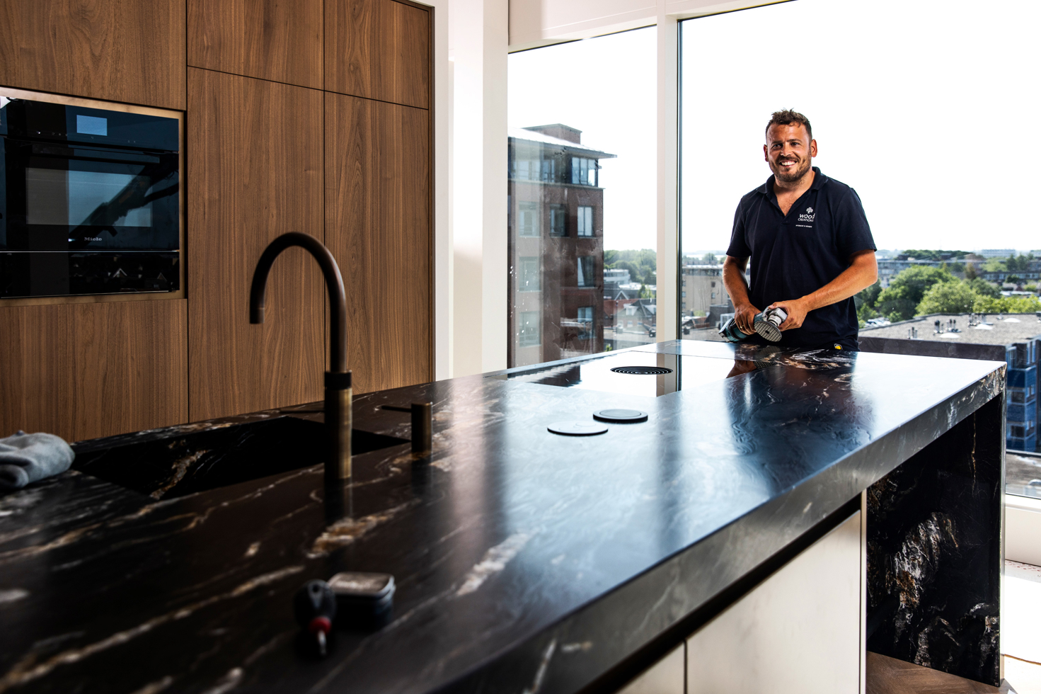 Daarna vertrek je met de bus naar de klant om een maatwerk keuken of interieur te monteren.
