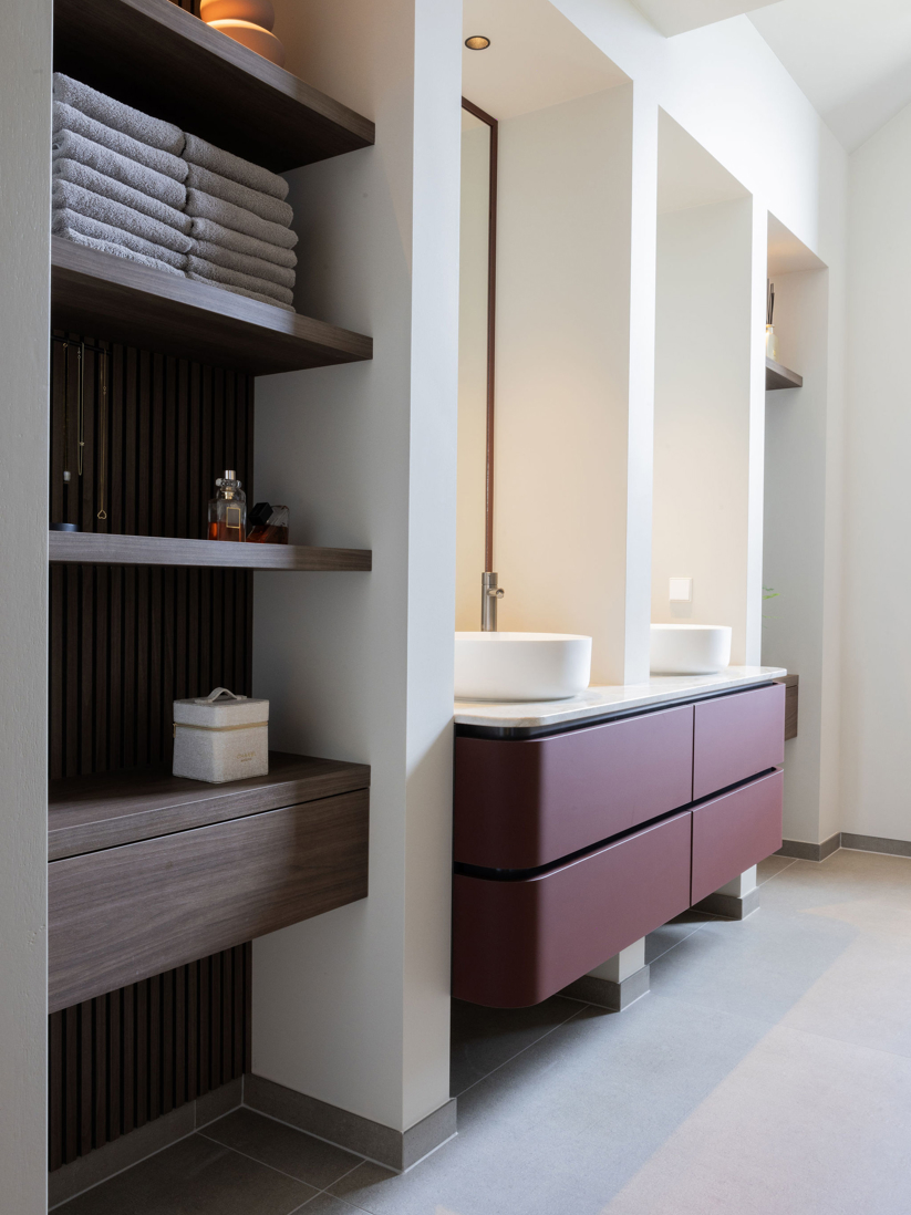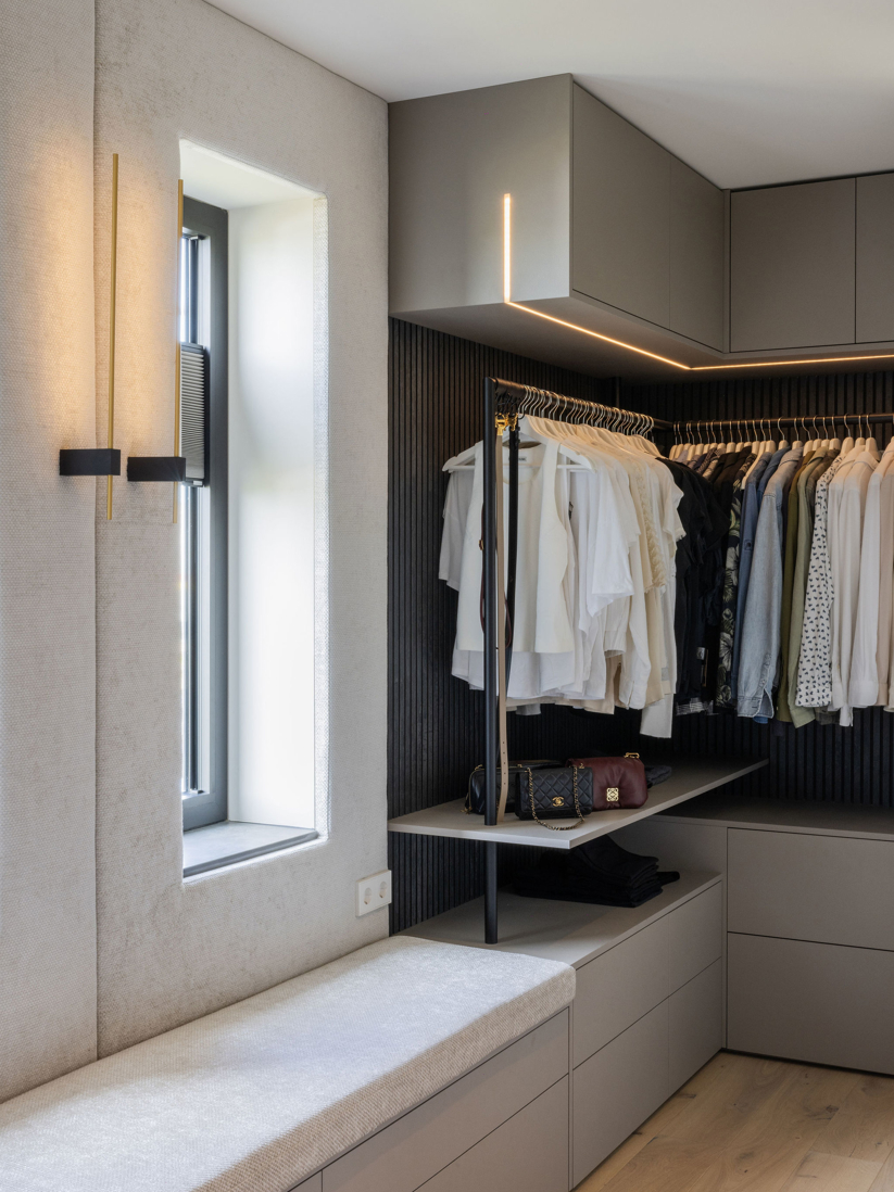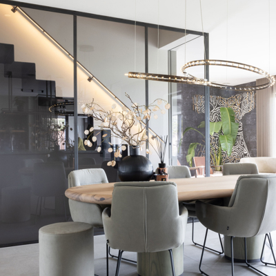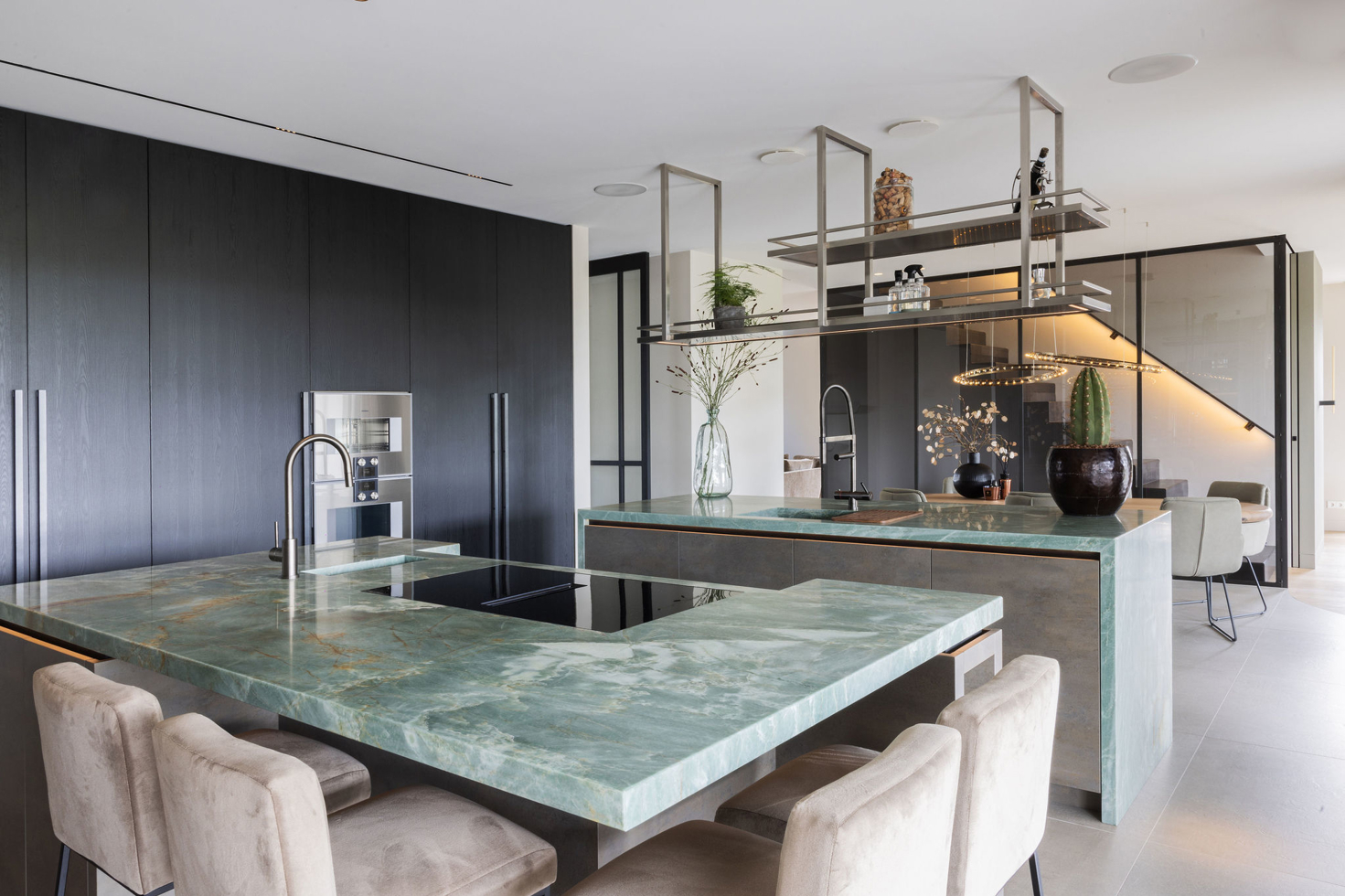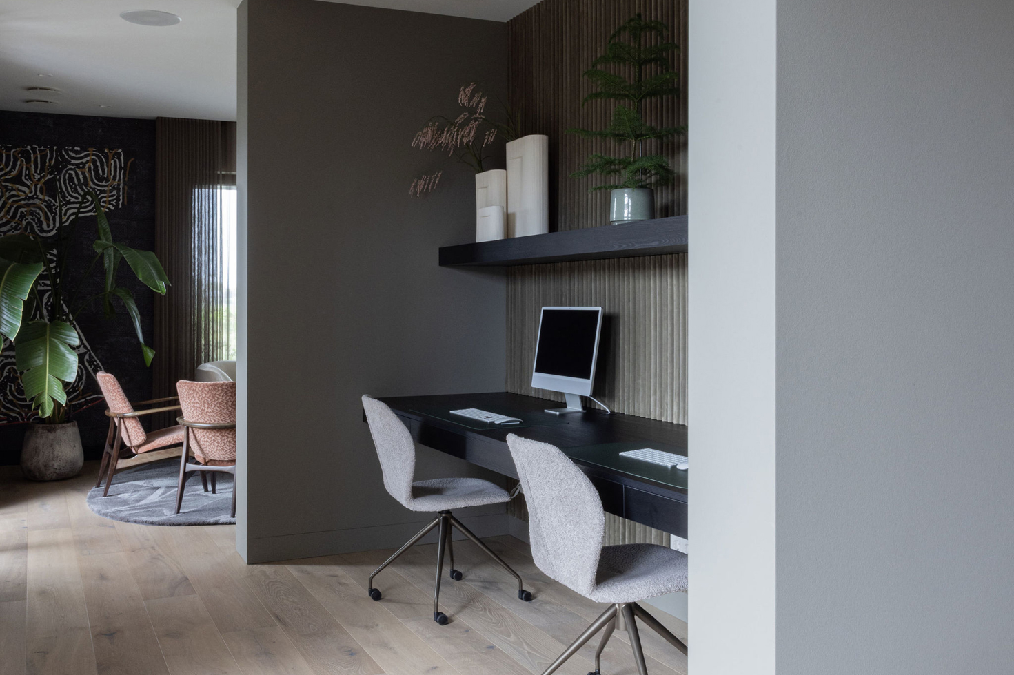 Bij deze moderne villa waren we al vroeg betrokken bij het bouwproces. Van vloeren tot lichtplan en van maatwerk tot meubilair: ieder detail is op elkaar afgestemd. Stoere en luxe materialen geven karakter, met twee eilanden in de keuken, een sfeervolle woonkamer en een intieme zithoek bij de haard. Ook de thuiswerkplek, badkamer, wasruimte, slaapkamer, binnendeuren en inloopkast zijn volledig door ons op maat ontworpen. Mooie dingen worden nog mooier als je ze bij elkaar laat passen.
