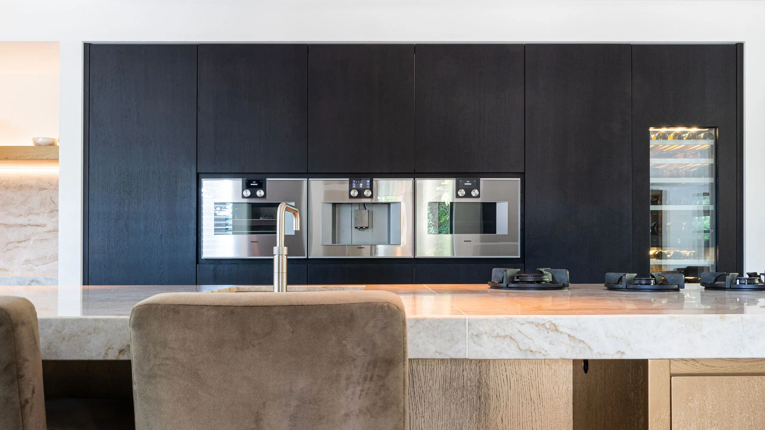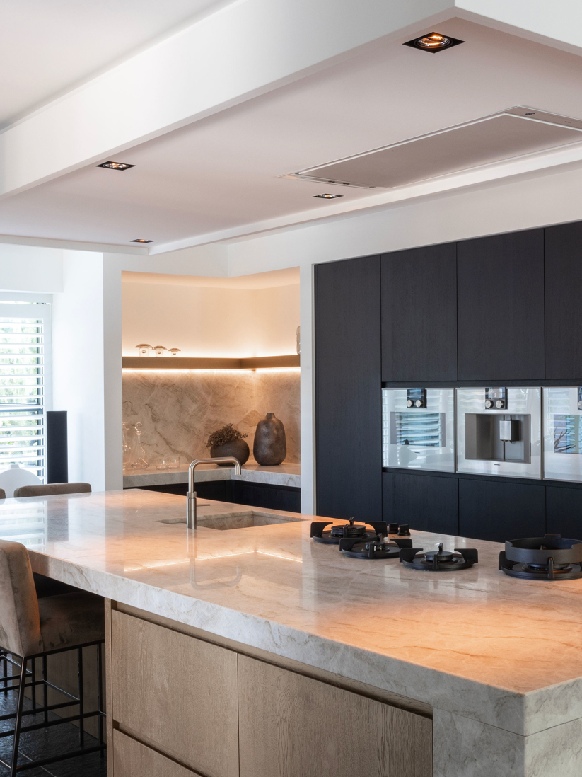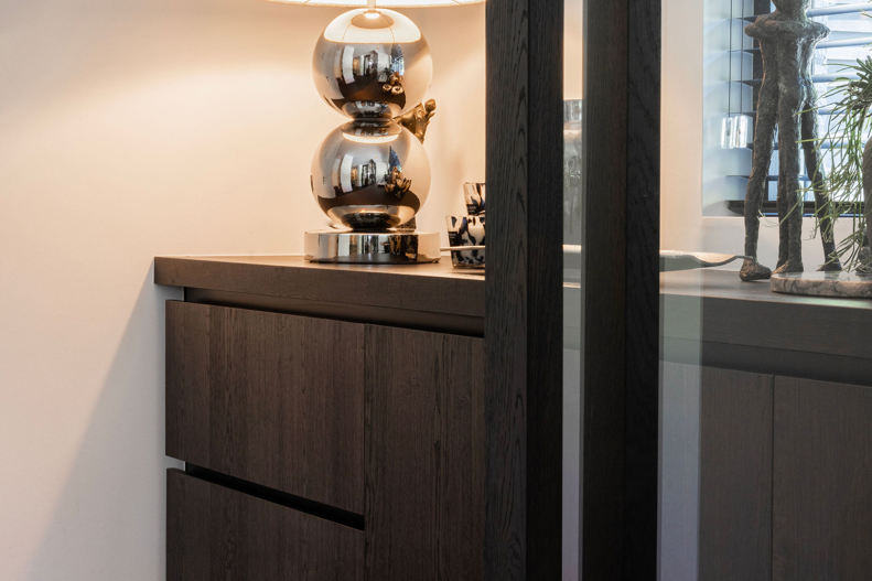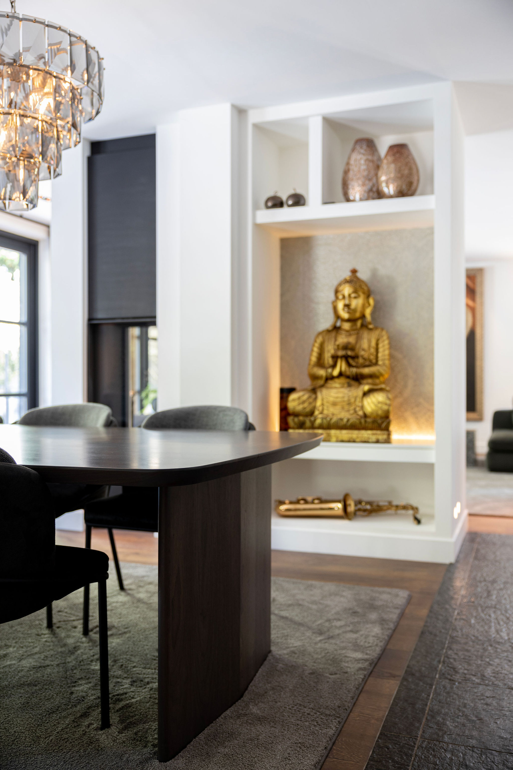 Van de op maat gemaakte notenhouten eettafel tot de keuken waarin brons, zwart eiken en natuursteen elkaar vinden — elk detail is met zorg ontworpen en met passie vervaardigd.