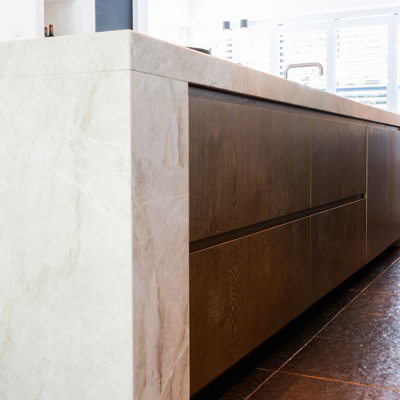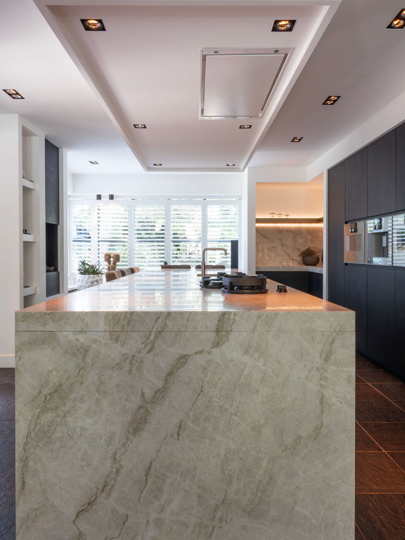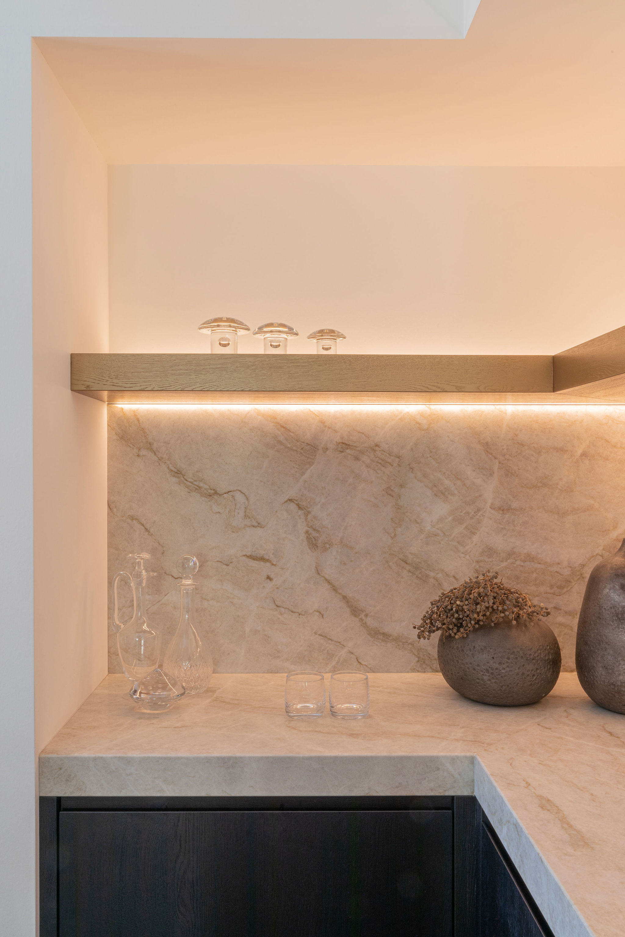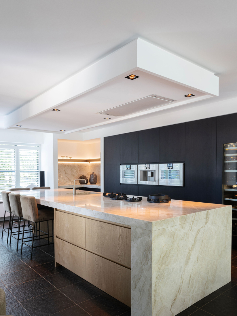 Van de op maat gemaakte notenhouten eettafel tot de keuken waarin brons, zwart eiken en natuursteen elkaar vinden — elk detail is met zorg ontworpen en met passie vervaardigd.