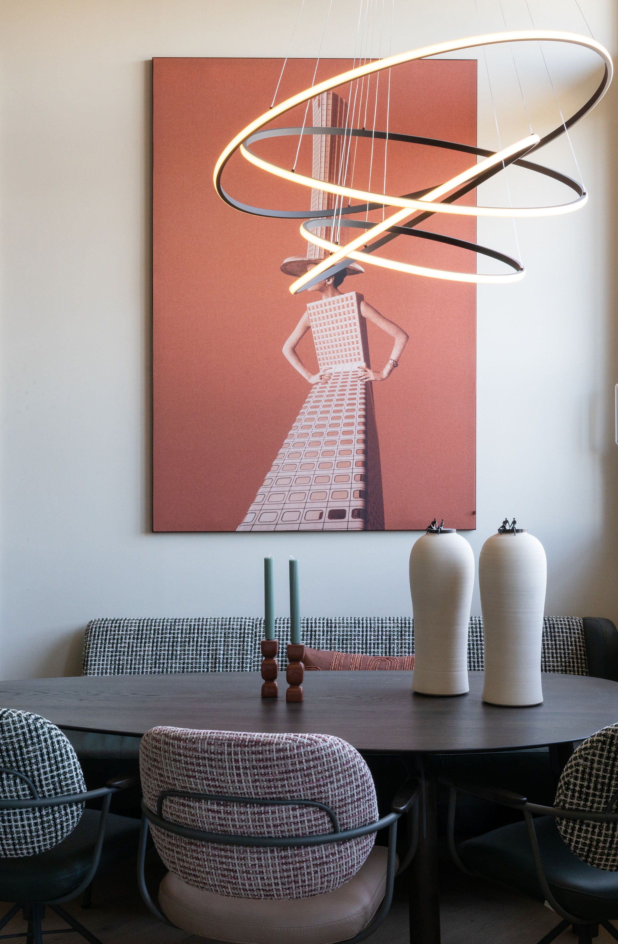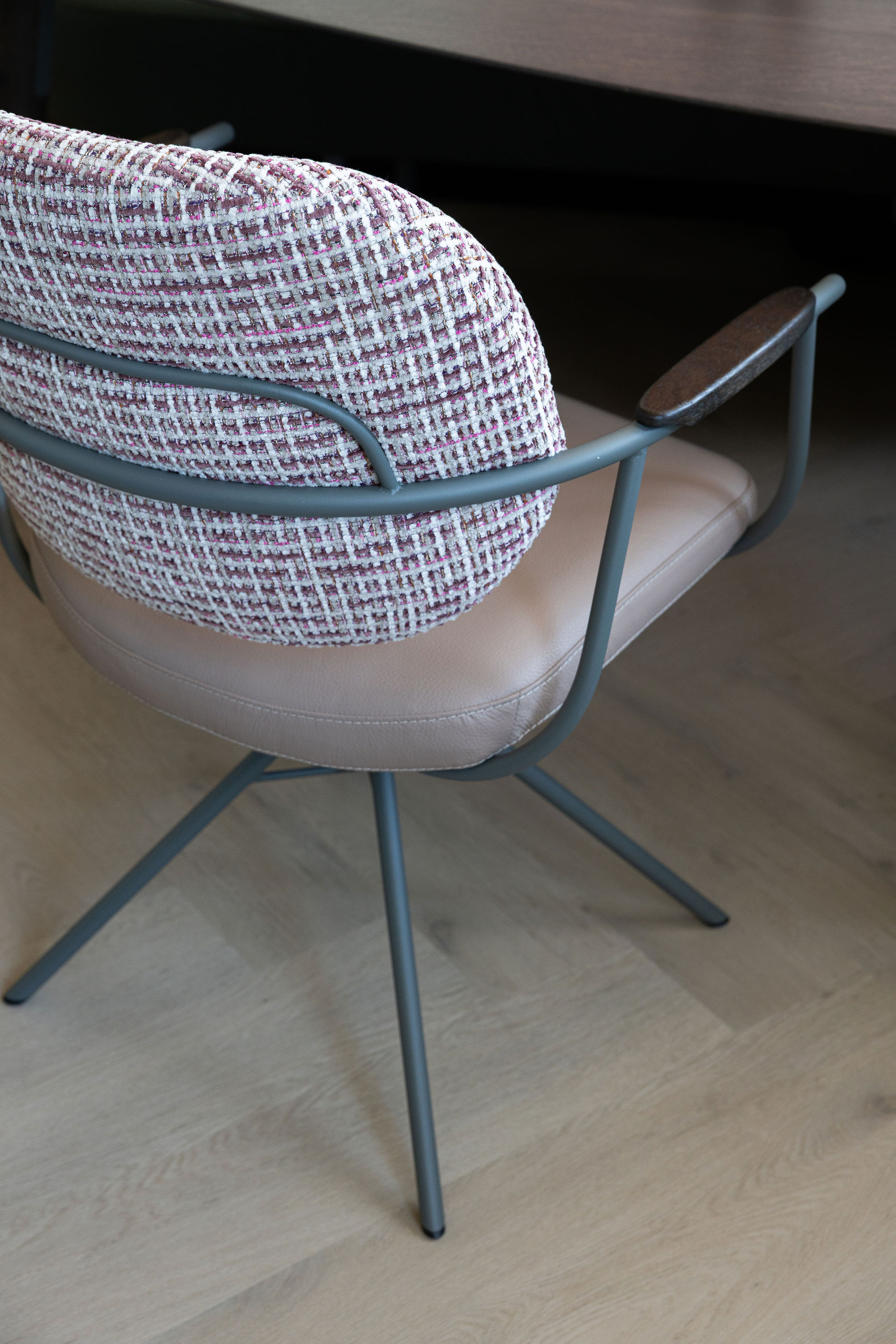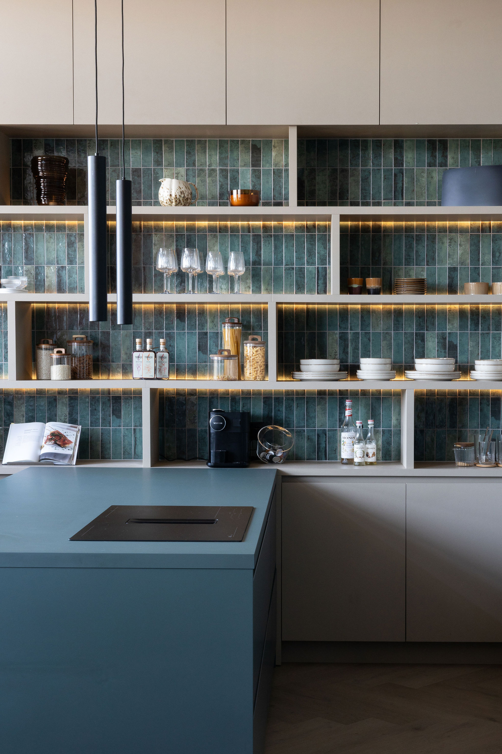 In dit project draait alles om kleur en balans, van de vakkenkast tot het losse meubilair. Diep zee blauw wordt versterkt door warme koraal tinten, waardoor elke hoek een eigen sfeer krijgt. Een speels en harmonieus geheel waarin werken, wonen en samenkomen moeiteloos in elkaar overlopen.