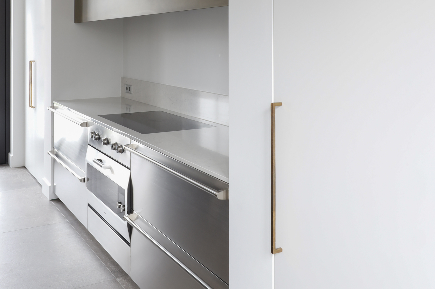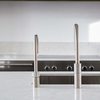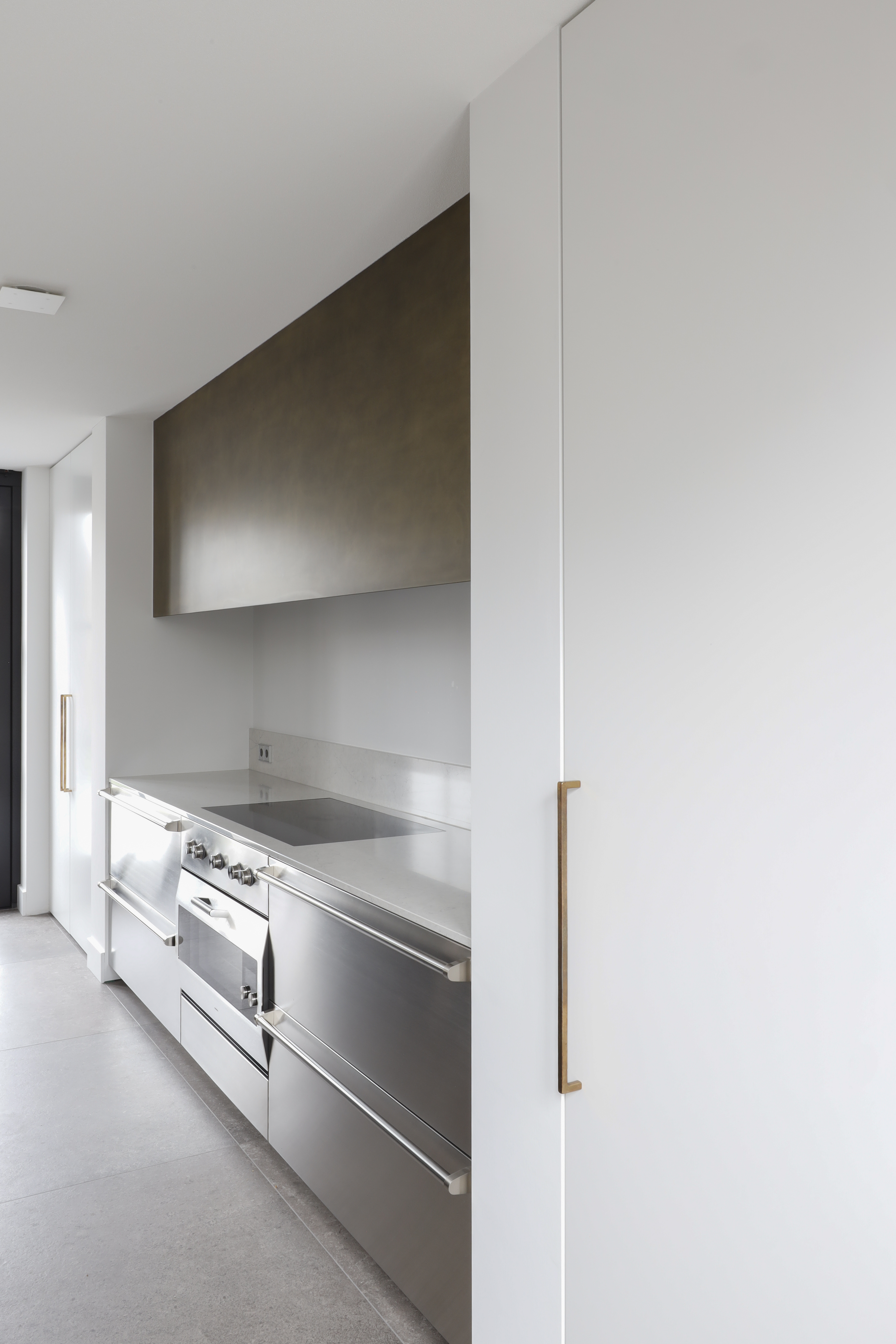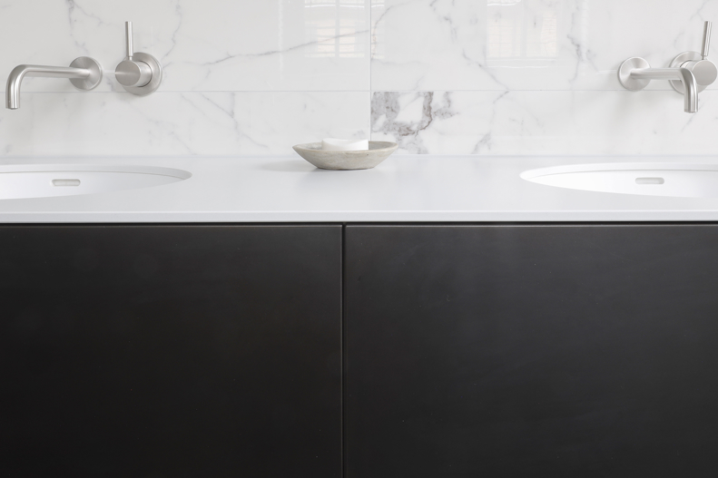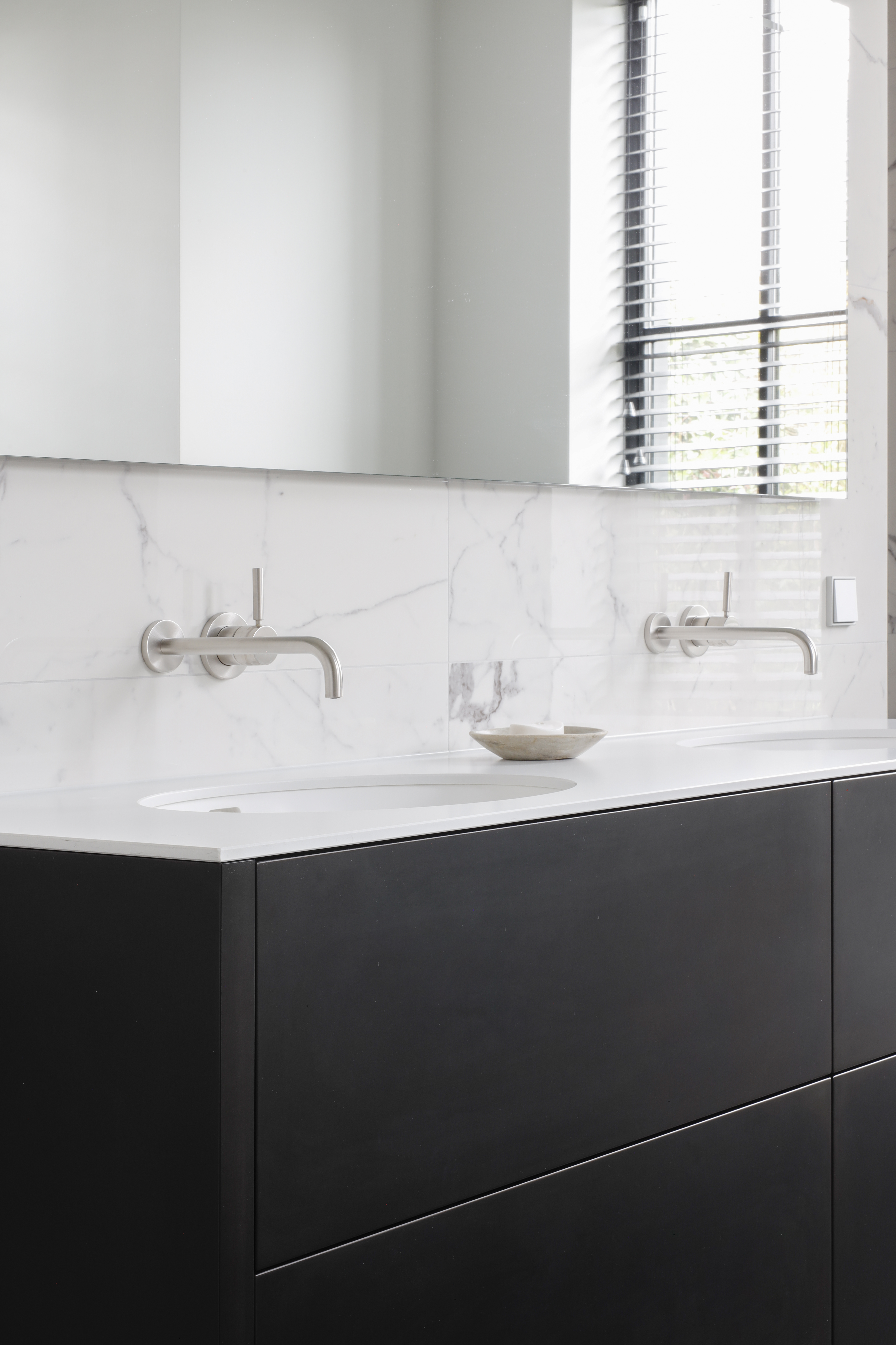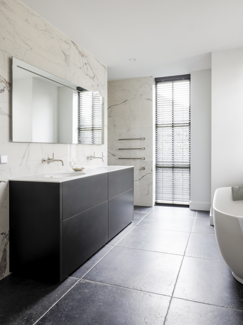 Voor dit project realiseerden we een interieur waarin moderne elegantie centraal staat. De hoogglans keuken vormt het hart van de woning en wordt versterkt door een verfijnd marmerlook werkblad en exclusieve bovenkasten in brons metaallak. Deze krachtige combinatie van materialen zorgt voor een luxe, maar tegelijkertijd strakke uitstraling. Het toiletmeubel en de badkamer zijn volledig in dezelfde stijl ontworpen, waardoor iedere ruimte perfect in balans is. Een woning waarin design, rust en eenheid samenkomen tot één stijlvol geheel.