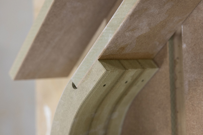 Voor onze keukens en meubels in natte ruimtes gebruiken we altijd watervast MDF als basis. Dit materiaal is bestand tegen vocht, condens en stoom – handig als de vaatwasser nog even uitstoomt of er wat condens uit de koelkast komt. Door de hoge dichtheid van dit materiaal zijn onze kasten uitzonderlijk sterk: een solide basis waarop we onze zorgvuldig gekozen scharnieren en ladegeleiders perfect kunnen monteren.