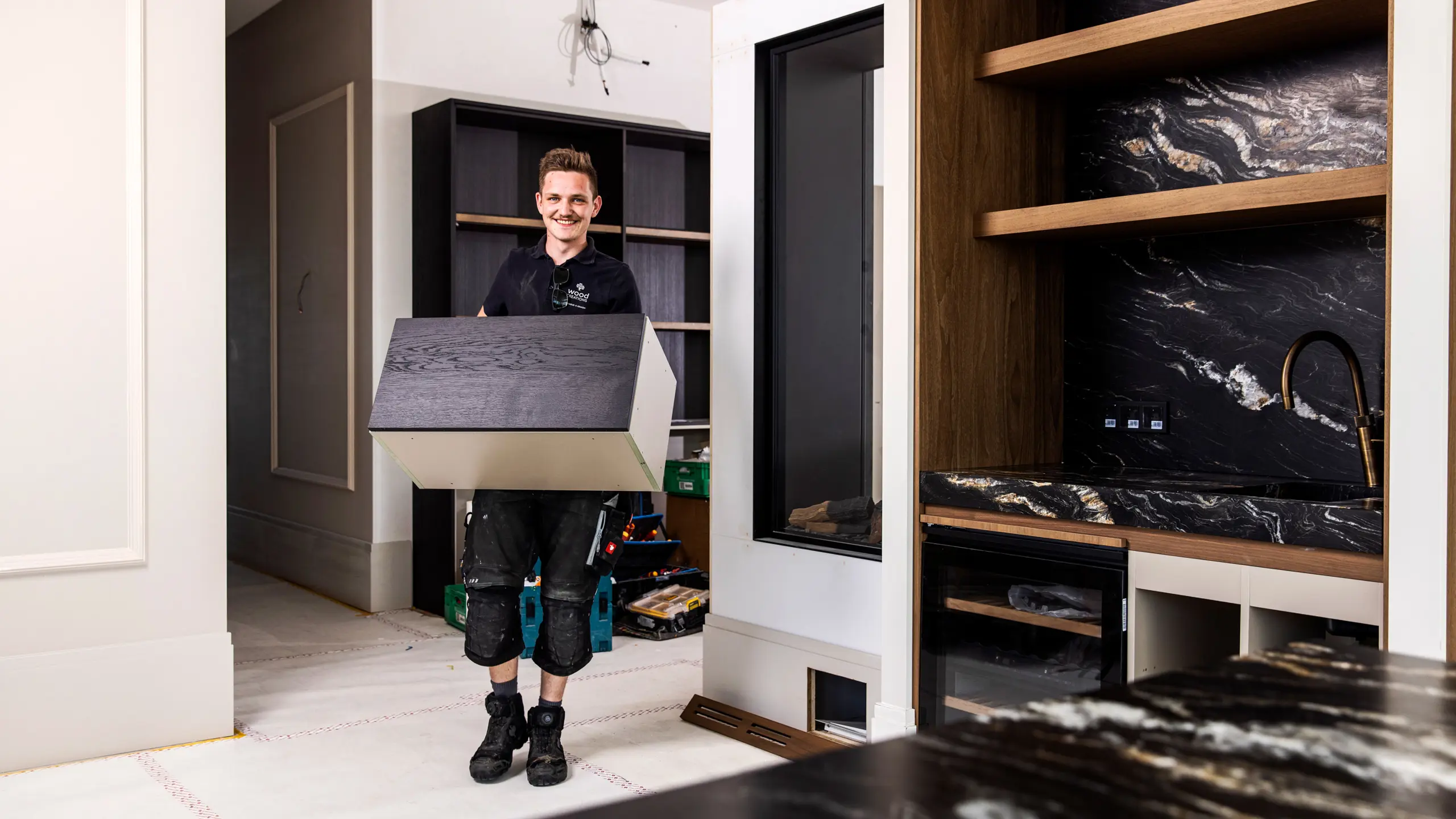 Daarna vertrek je met de bus naar de klant om een maatwerk keuken of interieur te monteren.